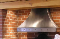 Canopies are manufactured from Mild Steel -Black painted or Pewter finish. Stainless Steel.-Polished or Satin finish. Copper and Brass.-Polished plain or hammered. Combination of coloured steel and stainless are often used in modern settings.